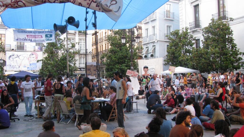 Stop Evictions Granada 15M is a social movement that fights for the right to housing in general, and for the rights of families in our city to not lose their home. We were born during the 15M movement, also known as “the Indignados Movement”. This was a series of citizen protests and actions, that emerged from the demonstrations of 15 May 2011 when civil and community groups around Spain spontaneously camped in squares in different cities and protested peacefully for a better democratic system in which citizens had more power.